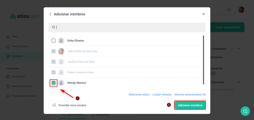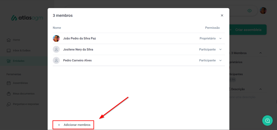 Como adicionar membros em uma entidade?