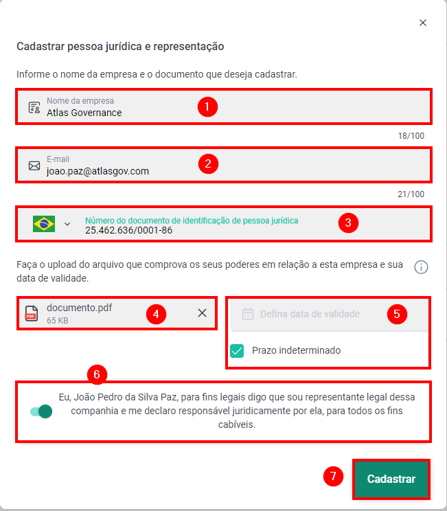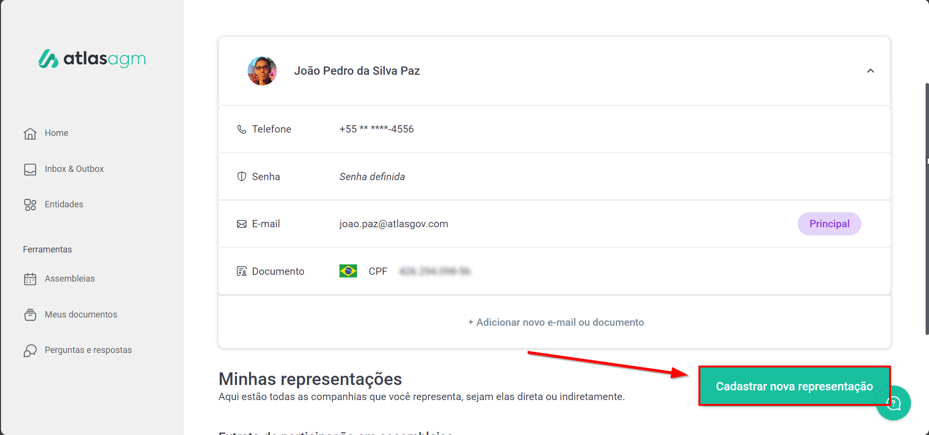 Adicionar uma nova representação, faz com que você se torne um dos responsáveis por votar nas deliberações de um CNPJ específico.