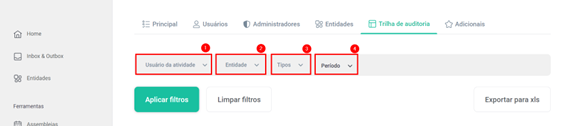 OBS: Lembre-se de ao selecionar os filtros, clicar em “Aplicar Filtros” para que a Trilha de Auditoria faça a busca.